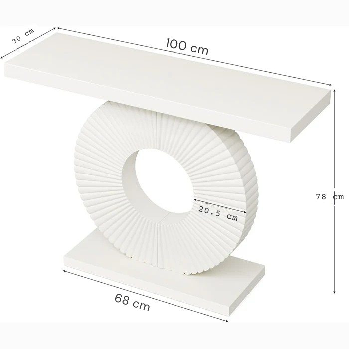 Functional & Stylish Console: This elegant white console table blends modern glamour with practical design through its distinctive frame and flowing curved accents. It creates a luxurious focal point, perfect for displaying décor. Versatile Accent Piece: Use this adaptable table to showcase collectibles, as a stylish study accent, or behind your sofa to organize essentials. Its chic design instantly elevates your home décor. Durable Engineered Wood Top: The substantial 4 cm thick tabletop supports up to 55 kg. At 100 cm long, it offers ample display space. Artistic Geometric Base: The open-frame design showcases wave-inspired cutouts. Precision welding ensures durability, rust resistance, and wobble-free stability.